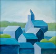 Laurens Spruit (hedendaags), dorpsgezicht, acrylverf op doek, r.o. gemonogrammeerd en op achterzijde spieraam van naam voorzien, 2013, 40 × 40 cm