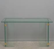 Glazen wandtafel met messing koppelstukken, jaren '90, 72 × 133 × 38 cm