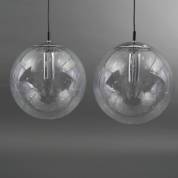 Paar verchroomd metalen bollampen met glazen kap voorzien van bellendecor, model Teardrop B-1228, uitvoering Raak Amsterdam, jaren '60/'70 -chipjes van bovenrand glas, chroom geoxideerd-, Ø 35 cm