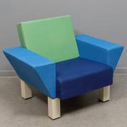 Armfauteuil bekleed met diverse kleuren wol, model Westside, ontwerp Etorre Sottsass, uitvoering Knoll, 79 × 99 × 77 cm