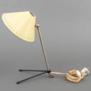 Metalen bureaulamp, de lichtgele kap met geponst sterrendecor, model Pinokkio, ontwerp Herman Busquet, uitvoering Hala Zeist, hoogte ± 32 cm