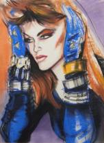 Hollandse School: vrouw met blauwe handschoenen, pastel op papier, niet gesigneerd, modern, 72 × 53 cm