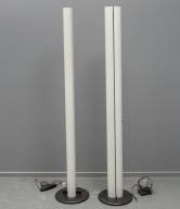 Paar metalen vloerlampen, model Megaron, ontwerp Gianfranco Frattini, uitvoering Artemide, Milaan, jaren '70, gemerkt onderop voet -gebruikssporen-, 182 × Ø 35 cm