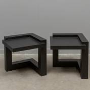 Paar zwartgelakte eikengefineerde bijzettafeltjes, uitvoering Piet Boon -lichte gebruikssporen-, 40 × 40 × 40 cm