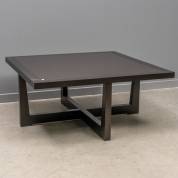 Vierkante donkerbruine houten bijzettafel met glazen blad, model Reverso, ontwerp Massimo Scolari, uitvoering Giorgetti, Italië, 40 × 90 × 90 cm