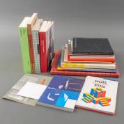 Acht boeken: Petersen, A. en P. Brattinga. 'Sandberg, een documentaire'. 1975; E. Beenker, e.a. 'Benno Premsela, een vlucht naar voren'. Centraal Museum Utrecht, 1996; 'Benno Premsela onder anderen'. Stedelijk Museum Amsterdam, 1982; Fr. Broeksma en Benno Premsela, 'Een relatie met ruimte'. 2008; Fr. Hughes, 'Wim Crouwel, modernist'. 2015; Eadem en H. Boekraad, 'Wim Crouwel, mode en module'. 1997; Ben Bos, 'Huisstijl, de kern van de zaak'. 2003; D. van Ginkel en P. Hefting, 'Ben Bos, design of a lifetime'. 2000. En 14 andere: over Premsela (7), Crouwel (5) en Bos (2)