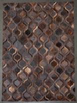 Patchwork vloerkleed, samengesteld uit stukjes rundervacht, 245 × 175 cm