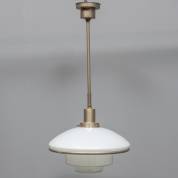 Deels wit en deels blank glazen lampenkap met verchroomd metalen montuur, model P4, ontwerp Otto Muller, uitvoering Sistrah, Duitsland, ontwerp jaren '30 maar mogelijk latere uitvoering -enkele chipjes van randen-, Ø 40 cm