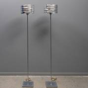 Paar vloerlampen met hoogglans aluminium kap, model Aqua Cil Terra, ontwerp Ross Lovegrove, uitvoering Artemide, Italië, 180 × Ø 32 cm