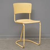 Geelgeschilderde buisframe stoel met ronde voet en stang, Gispen-stijl, 20e eeuw -verf sleets-, 81 × 42 × 42 cm