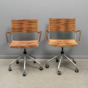 Paar metalen bureaustoelen met leerkoord zitting en rugleuning, de zitting in hoogte verstelbaar, staand op wieltjes, model Miss B4, uitvoering Pierantonio Bonacino, Italië, circa 1990, 85 × 62 × 52 cm