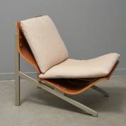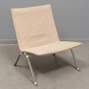 Stalen en canvas fauteuil, model PK22, ontwerp Poul Kjaerholm, gemerkt, uitvoering E. Kold Christensen, Denemarken -bekleding vernieuwd en met gebruikssporen-, 71 × 63 × 60 cm