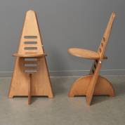 Paar verstelbare berkenmultiplex stoelen, model Lundi-sit, ontwerp Gijs Boelaars, uitvoering Lundia, jaren '70 -gebruikssporen, vochtschade-, 90 × 49 × 49 cm