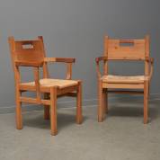 Paar grenen armstoelen met papierkoord zitting, ontwerp Tage Poulsen, uitvoering GM Möbler, jaren '60-'70 -gebruikssporen-, 86 × 57 × 43 cm