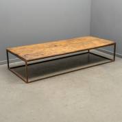 Rechthoekige salontafel met houten blad op stalen buisframe, hedendaags -gebruikssporen-, 38 × 191 × 82 cm