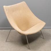 Fauteuil met grijze bekleding op metalen onderstel, model F157 Oyster, ontwerp Pierre Paulin, uitvoering Artifort, circa 1970 -nicotineaanslag-, 85 × 89 × 60 cm