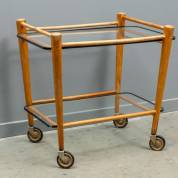 Beuken serveerwagentje met twee glasplaten, uitvoering Coja, Culemborg, jaren'60 -hout en rubber delen uitgedroogd-, 57 × 62 × 46 cm