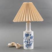 Porseleinen lampvoet met geplisseerde kap, decor papaver dubium, ontwerp Kaj Lange, uitvoering Fog & Mørup en Royal Copenhagen, Denemarken, jaren '60, 33,5 × 10 cm