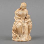 Albasten beeldgroepje: Maria met kind en twee engelen, Italië, 19e eeuw -meerdere restauraties en herstellingen-, hoogte 14 cm