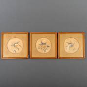 Eduardus Josephus Hubertus Borret (1816-1867), drie werken, vogels op tak, aquarel op papier, gemonogrammeerd EB en gedateerd 1841, Ø 10 cm