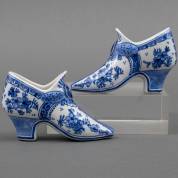 Paar Delfts aardewerk muiltjes met blauw-wit decor, uitvoering De Porceleyne Fles, 6,5 × 11 cm