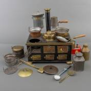 Metalen kinderfornuisje met diverse toebehoren, 37,5 × 39 × 21 cm