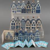 16 aardewerk KLM-huisjes, gemerkt Royal Delft Blue en Rijnbende, met enkele boekjes, en een KLM-huisje-asbak