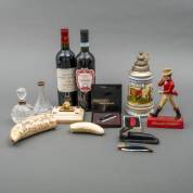 Divers kleingoed, waaronder aansteker uitvoering Valentino Garavani, Zwitsers zakmes en twee flessen rode wijn: Valpolicella, 2020 en Chateau Grand Moulinet Pomerol, 2016