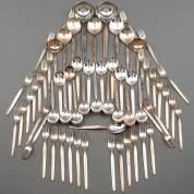 Verzilverd bestekgedeelte, uitvoering WMF, bestaande uit: 18 dinervorken, 19 dinermessen, 18 dinerlepels, 18 dessertvorken, 17 dessertmessen, 18 dessertlepels, 24 taartvorkjes, 19 theelepels en 9 diverse dienlepels