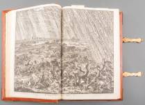 Boek: Judaica - Flavius Josephus (37-100 na Chr.) Alle de werken, behelzende twintig boeken van de Joodsche oudheden. In 't Nederdruytsch overgebragt door W. Séwel. Daarby gevoegd De vyf boeken van Egesippus Van de Joodsche oorlogen, en de verdelging Jerusalems. Amsterdam, P. Mortier, 1704. (XXXVIII) 783 (30), 113 (11) pp. Folio. Nieuwe lederen band over houten platten, messing hoekstukken en twee klampen. Met gegraveerde titel, 9 dubbelbladige prenten. 3 kaarten, 3 plattegronden en meer dan 200 gravures in de tekst, meredendeels door J. en C. Luiken