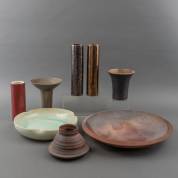 Acht keramische objecten: schalen en vaasjes, enkele gemerkt, jaren '80-'90, 6 × Ø 44 cm