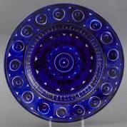 Keramische sierschaal met blauw-wit cirkel- en strependecor 'Valencia', ontwerp Ulla Procopé, uitvoering Arabia, Finland, jaren '60 -gebruikssporen-, 5 × Ø 36 cm