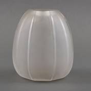 Gesatineerd glazen vaas met geslepen heldere lijnen, ontwerp Andries Dirk Copier, model slijpsel 642, uitvoering Glasfabriek Leerdam, 17 × Ø 15 cm