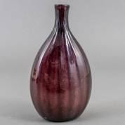 Paars glazen drankflesje met pompoenvormige ribbels in de buik, circa 1800, hoogte 18 cm -mogelijk barst onderin de buik-