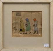 Toegeschreven aan Harm Kamerlingh Onnes (1893-1985), kinderen in de regen, potlood en aquarel op papier, niet gesigneerd, 10 × 11,5 cm