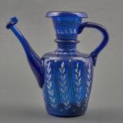 Blauw glazen schenkkan met witte en zilveren beschildering, Perzië, 18e/19e eeuw -gelijmd-, 20 × 20 × 10 cm