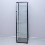 Glazen vitrine met drie schappen, het zwart metalen frame met goudkleurige hoeken, 175 × 50 × 50 cm