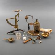 Vernevelaar met toebehoren -mogelijk incompleet-, brievenweegschaal en een vergrootglas