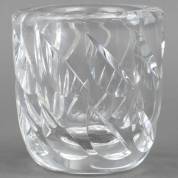 Dikwandig blank glazen vaasje met bladvormige inkepingen, uitvoering Orrefors Zweden, onderop gemerkt OF HA2013/4