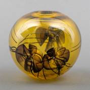 Willem Heesen (1925-2007): dikwandige okergele kogelvaas 'anemones', met zwart bloemdecor van glasdraden, op onderzijde gesigneerd, Ø 13 cm