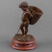 Louis Kley (1833-1911), cherubijn met mand op de rug, gepatineerd brons, gesigneerd, 11,5 × Ø 7 cm