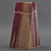 Marianna Franken (1928), grote rechthoekige keramische vaas met verticaal banendecor, gemerkt, jaren '80, herkomst: Galerie Amphora, Oosterbeek, 42 × 15 × 15 cm