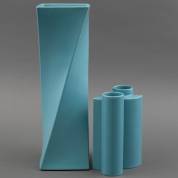 Twee turquoise keramische vazen, multipels, ontwerp Jan van der Vaart, uitvoering Oar Wurk Makkum, jaren '70 -kleine vaas met twee chipjes langs de voet-, grote vaas 37,5 cm