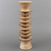 Jan van der Vaart (1931-2000), hoge zandkleurige keramische vaas met negen ringen, gesigneerd en gedateerd '64 -de hals met forse maar professionele restauraties-, 53 × 16 cm