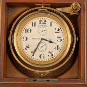 Messing scheepsklok met cardanische ophanging in mahonie kistje, adres: Longines, circa 1930, 11 × 15,5 × 15,5 cm