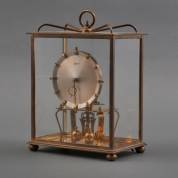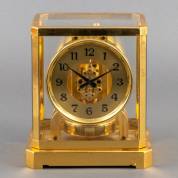 Vergulde messing Atmos tafelklok, de wijzerplaat met zwarte Arabische cijfers, genummerd 8910, met glazen kast, uitvoering Le Coultre & Co, Zwitserland, 1941, rond 2001 is de klok nog nagekeken, 23,5 × 21 × 16 cm