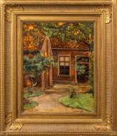 Dirk Berend Nanninga (1868-1954), huisje met voortuin, olieverf op paneel -enkele kleine lacunes langs rand rechts-, 34 × 27 cm