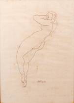 Hendrik Wiegersma (1891-1969), liggend naakt, tekening, r.o. gemonogrammeerd en gedateerd 1934, 45 × 32 cm