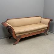 Mahoniekleurige beukenhouten bank met beige bekleding, biedermeier -kleine schade aan hout links-, 86 × 230 × 67 cm