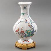 Soft-paste porseleinen vaas met polychroom decor in Kakiemon-stijl, uitvoering Samson, Edmé et Cie, na 1941, gemerkt, naar voorbeeld van Chantilly uit het tweede kwart van de 18e eeuw, op verguld bronzen voet, vastgeschroefd via bodem, 27 × 17 × 11 cm